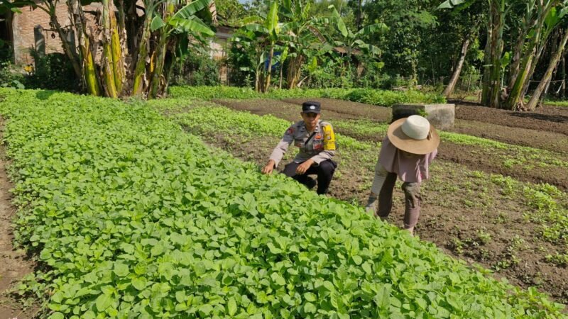 Dalam kegiatan tersebut, Briptu Choiril Kurniawan melakukan pengecekan langsung terhadap tanaman kangkung dan bayam milik Sdri. Partiyem yang ditanam sebagai sumber pangan bergizi bagi keluarga. Selain itu, ia juga memberikan motivasi kepada warga agar terus memanfaatkan lahan yang ada secara optimal.