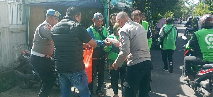 Jum’at Peduli: Polsek Grogol Petamburan Santuni Driver Ojol dengan 200 Paket Nasi