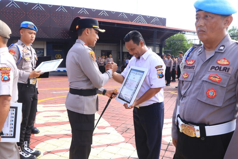 Ngawi – Kapolres Ngawi Prayoga Angga Widyatama, S.I.K., M.Si., memimpin langsung upacara pemberian penghargaan kepada personel berprestasi di lingkungan Polres Ngawi. Kegiatan tersebut dilaksanakan di Lapangan Satya Haprabu Polres Ngawi.