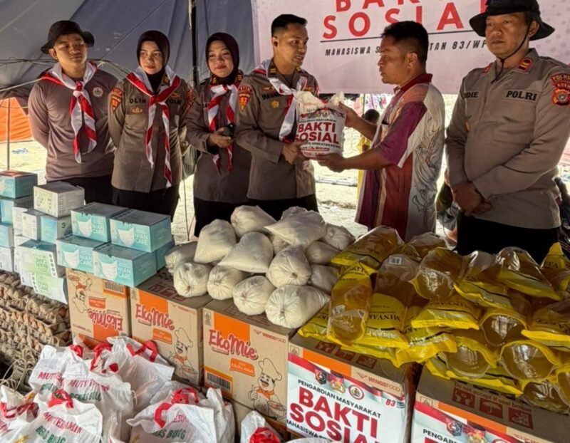 Mahasiswa STIK Angkatan 83 menyalurkan bantuan sosial kepada warga terdampak banjir di Aceh Utara sebagai wujud kepedulian dan semangat Polri Presisi hadir untuk kemanusiaan.