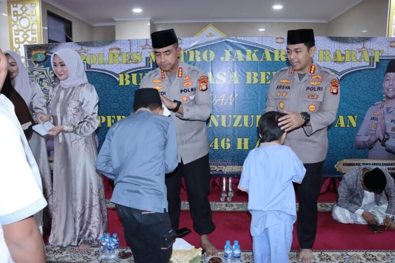 Jakarta Barat – Suasana penuh kehangatan dan kebersamaan terasa di Masjid Jami Al-Istiqomah Polres Metro Jakarta Barat saat peringatan Nuzulul Quran digelar bersamaan dengan kegiatan santunan anak yatim piatu, Kamis (20/3/2025).