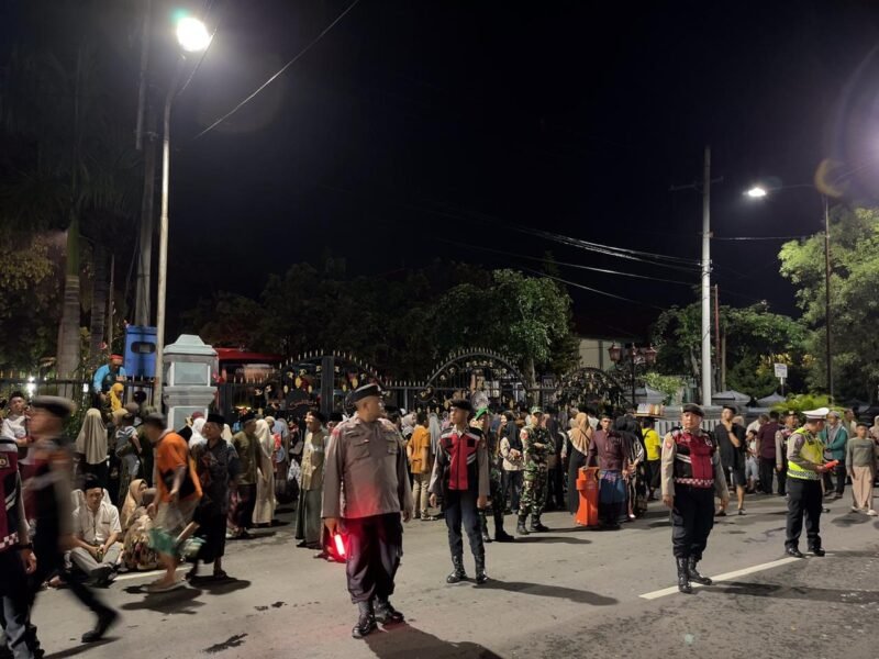 Ngawi – Pemberangkatan Calon Jamaah Haji (CJH) Kabupaten Ngawi tahun 1447 H/2026 M kloter 22 dan 23 berlangsung tertib, aman, dan lancar berkat pengamanan ketat dari jajaran Polres Ngawi. Kegiatan yang dipusatkan di Pendopo Wedya Graha, Minggu malam (26/4/2026) hingga Senin dini hari (27/4/2026), menjadi fokus utama pengamanan guna menjamin keselamatan seluruh jamaah.