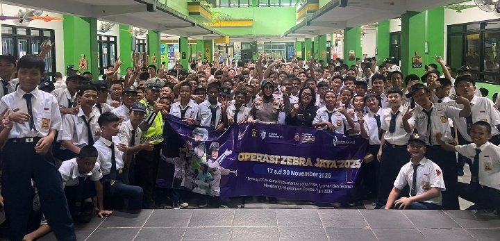 Jakarta Barat — Dalam rangka mendukung pelaksanaan Operasi Zebra Jaya 2025, Satuan Lalu Lintas Polres Metro Jakarta Barat kembali memperkuat edukasi keselamatan jalan raya melalui program Police Goes To School di SMPN 88 Jakarta, Senin (17/11/2025).