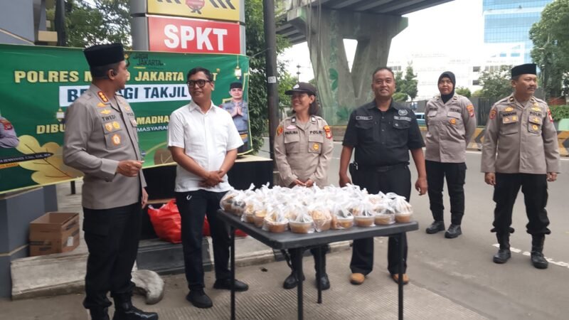 JAKARTA BARAT — Polres Metro Jakarta Barat menggelar kegiatan berbagi ratusan paket takjil kepada masyarakat bersama insan pers dalam momentum Ramadan 1447 Hijriah. Kegiatan tersebut berlangsung di depan Mapolres Metro Jakarta Barat, Rabu (25/2/2026) petang.