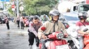 Polisi Bantu Pengendara Terjebak Banjir di Jalan Panjang Kedoya Jakarta Barat