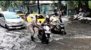 Polsek Cengkareng Turun Atur Arus Lalu Lintas di Tengah Genangan
