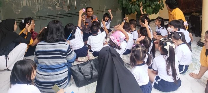 Kegiatan tersebut menjadi sarana interaktif bagi anak-anak untuk mengenal lebih dekat sosok polisi dan peran pentingnya dalam menjaga keamanan serta ketertiban masyarakat. Dengan pendekatan yang menyenangkan, para personel Binmas memperkenalkan berbagai aspek dasar tentang keselamatan dan kedisiplinan sejak usia dini.