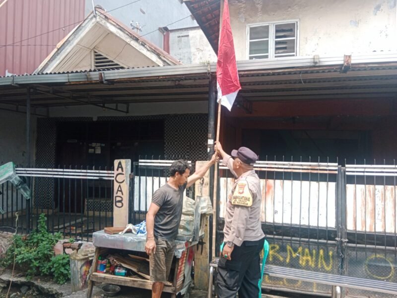TAMANSARI  – Menyambut peringatan Hari Ulang Tahun (HUT) ke-80 Republik Indonesia, Polsek Metro Tamansari Polres Metro Jakarta Barat menggelar aksi nyata memupuk semangat kebangsaan. Puluhan personel polisi turun langsung ke jalan, membagikan bendera merah putih kepada warga, sekaligus memasangkannya di rumah-rumah yang belum terpasang.