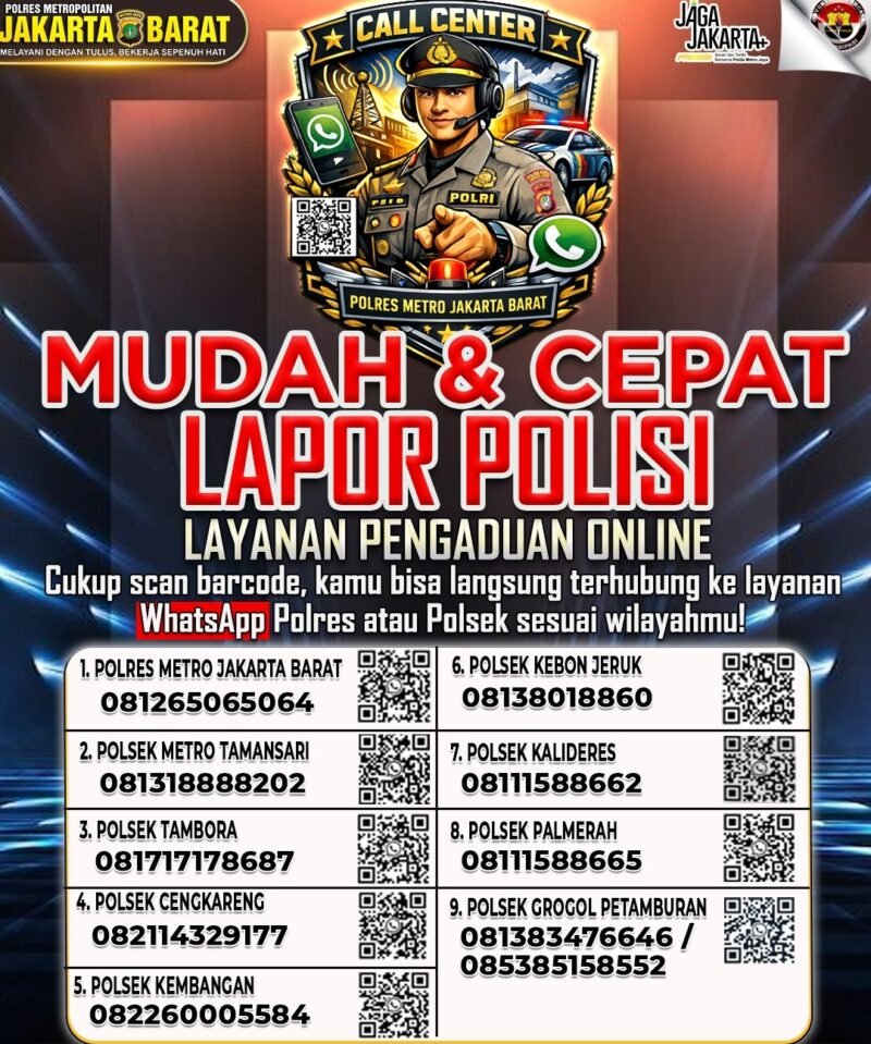• Polres Metro Jakarta Barat: 0812-6506-5064